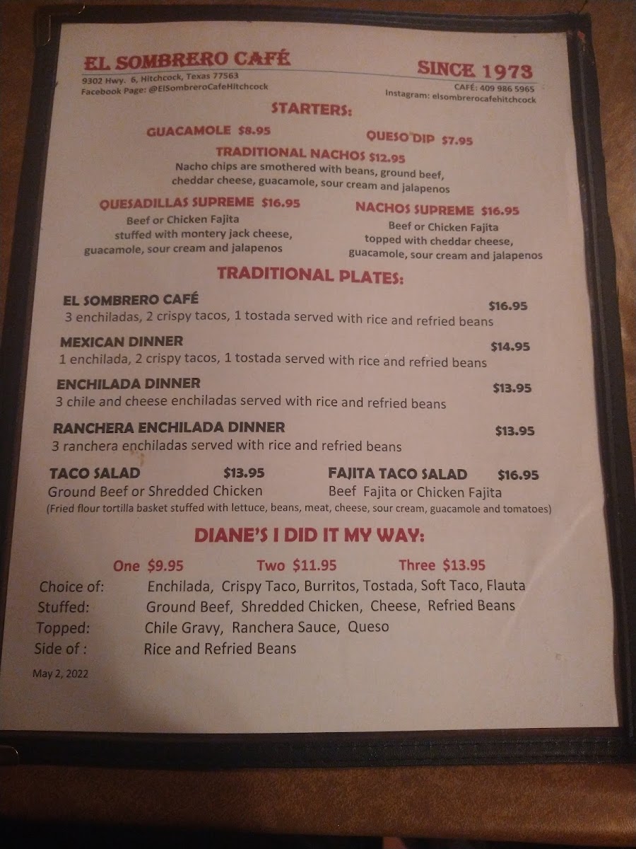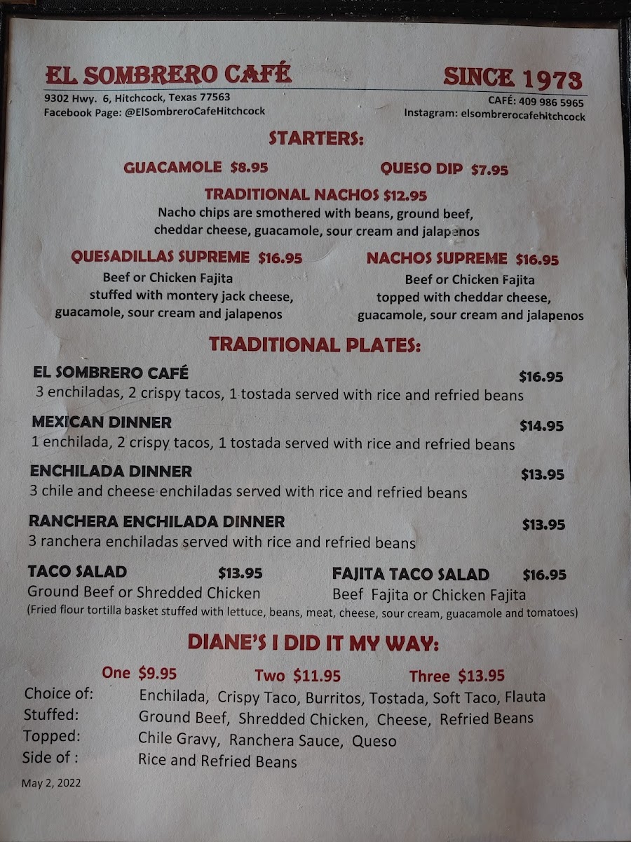 Welcome to El Sombrero Café, a charming gem nestled in Hitchcock, Texas, where authentic cuisine meets heartfelt hospitality. This cozy spot has quickly become a favorite among locals for its vibrant and satisfying menu.